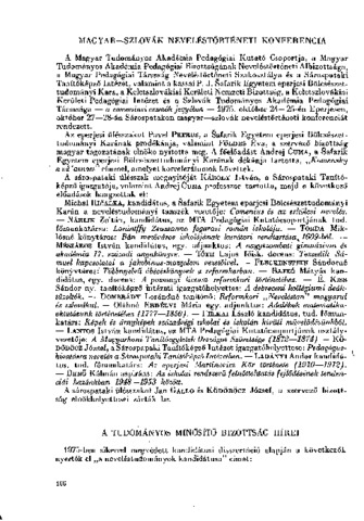 Magyar-Szlovák Neveléstörténeti Konferencia. In: Magyar pedagógia : a Magyar Tudományos Akadémia Pedagógiai Bizottságának folyóirata, (76) 1-2. p. 166. (1976)