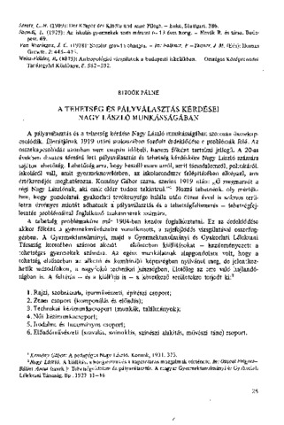 Ritoók Pálné: A tehetség és a pályaválasztás kérdései Nagy László munkásságában. In: Magyar pedagógia : a Magyar Tudományos Akadémia Pedagógiai Bizottságának folyóirata, (83) 1. pp. 25-30. (1983)