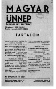 | Folyóirat/könyv/kiadvány címe: | Magyar Ünnep : tanügyi havi folyóirat |