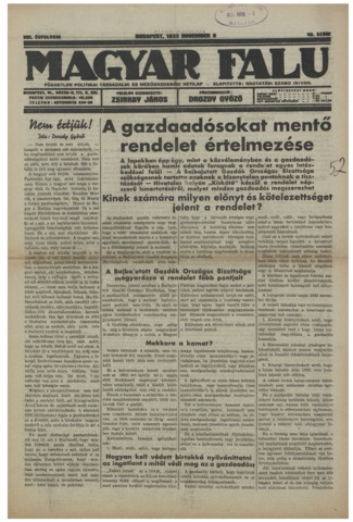 | Folyóirat/könyv/kiadvány címe: | Magyar Falu : politikai, társadalmi és mezőgazdasági hetilap |
