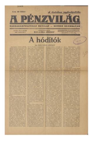| Folyóirat/könyv/kiadvány címe: | A Pénzvilág |