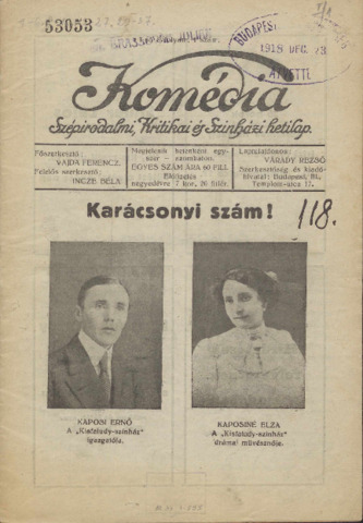 Folyóirat/könyv/kiadvány címe: Komédia : Szépirodalmi, Kritikai és Színházi hetilap