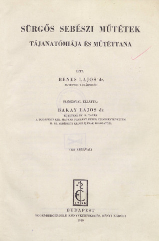 Benes Lajos: Sürgős sebészi műtétek tájanatómiája és műtéttana.