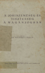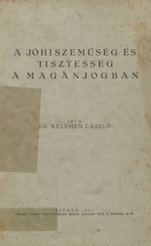 Kelemen László: A jóhiszeműség és tisztesség a magánjogban.