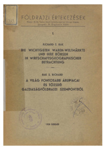 | Kulcsszavak: | Gazdasági földrajz, Tőzsde, Kereskedelmi földrajz |